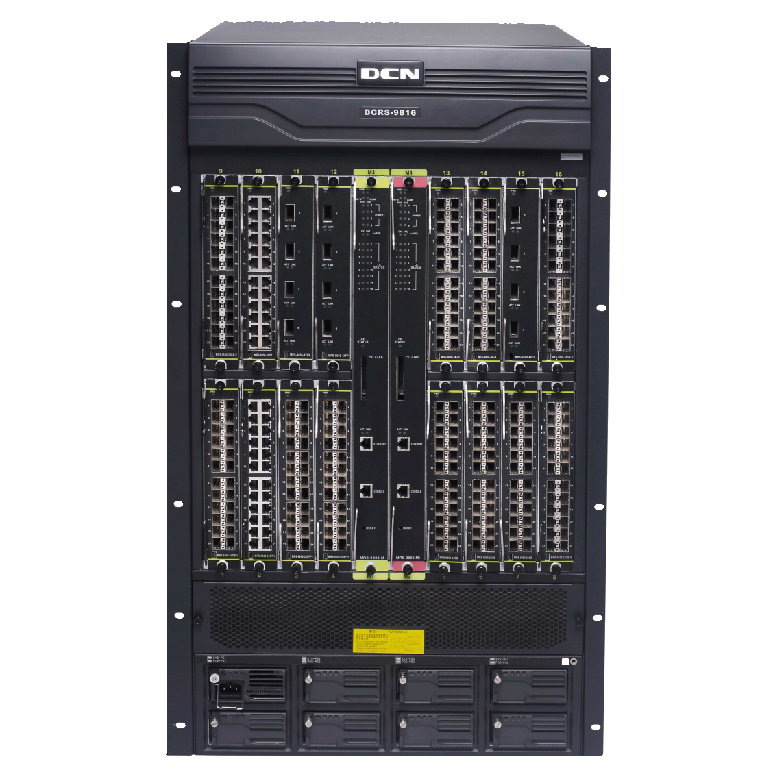 | DCRS-9816 | DCRS-9816机箱式路由交换机主机(16个标准业务插槽, 2个超级管理引擎插槽,研讨电源3+1冗余,PoE电源3+1冗余),标配1个MRS-9800-AC研讨电源,不含管理引擎模块和交换网板模块 |